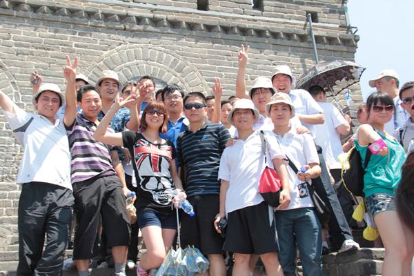 “不到長城非好漢”。13日,我們便開赴八達嶺長城,開始了好漢征程。想起一些古老的故事,烽火戲諸侯、孟姜女哭長城,可惜,背景不是我們現(xiàn)在將要登上的八達嶺長城。站在烽火臺上,看著延綿不斷的長城像條長龍盤踞在群山之間,你會相信,真的,這是可以在太空中用肉眼看見的人工建筑,當之無愧的世界七大奇跡之一。