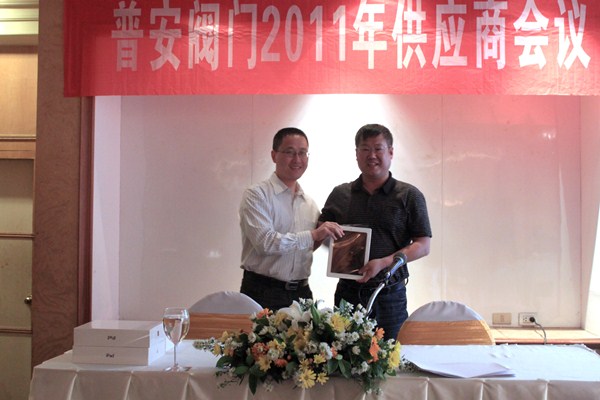 公司總經(jīng)理為優(yōu)秀供應商頒發(fā)紀念獎