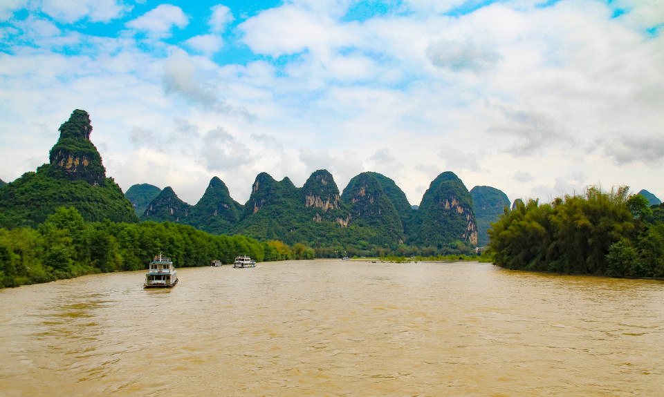 第二站,我們將深入體會桂林的山水,當我們坐上游輪行走在漓江上,領略了桂林山的奇異與秀美,兩岸連綿起伏的青山,婷婷玉立,石崖篷里,長出青蔥翠綠的花草樹木,每座山都有不同的形狀,奇異變幻,形態(tài)萬千,感受著十里畫廊的秀美。